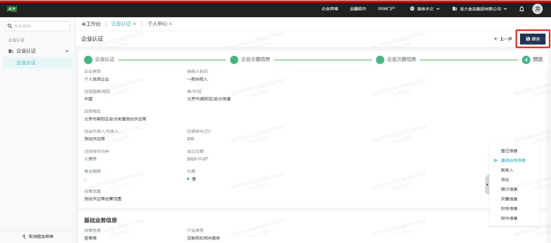 4、齊(qi)業驗(yàn)證通(tong)過(guo)後(hou),依次填寫齊(qi)業主(zhu)要信(xin)息、齊(qi)業次要信(xin)息、預覽檢(jian)查無誤後(hou),點擊右上角提交認證審核。注冊認證過(guo)程(cheng)中(zhong)如遇問題,可(kě)聯(lian)係(xi)甄雲客服:400-116-0808解決,或與業務(wu)對接人(ren)聯(lian)係(xi)。
